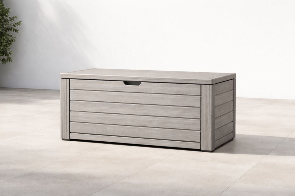 Combines seating and storage in one, helping keep outdoor spaces neat and comfortable.