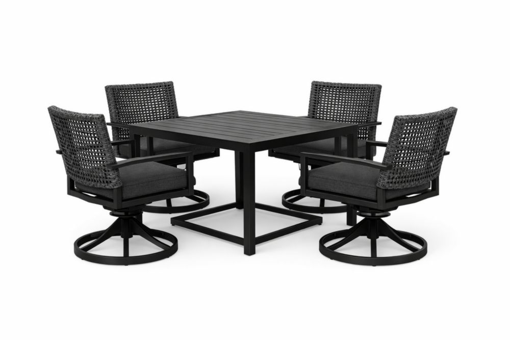 Outdoor Aluminum Dining Set with Square Table and Four Swivel Chairs