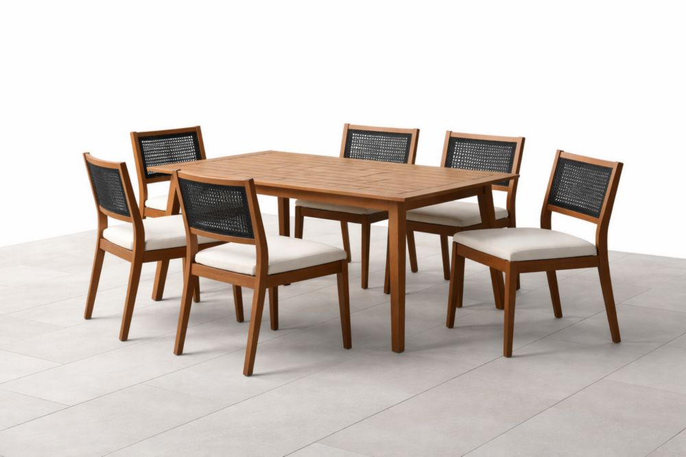 Acacia Wood Outdoor Dining Set with Wicker Backs and Cushions