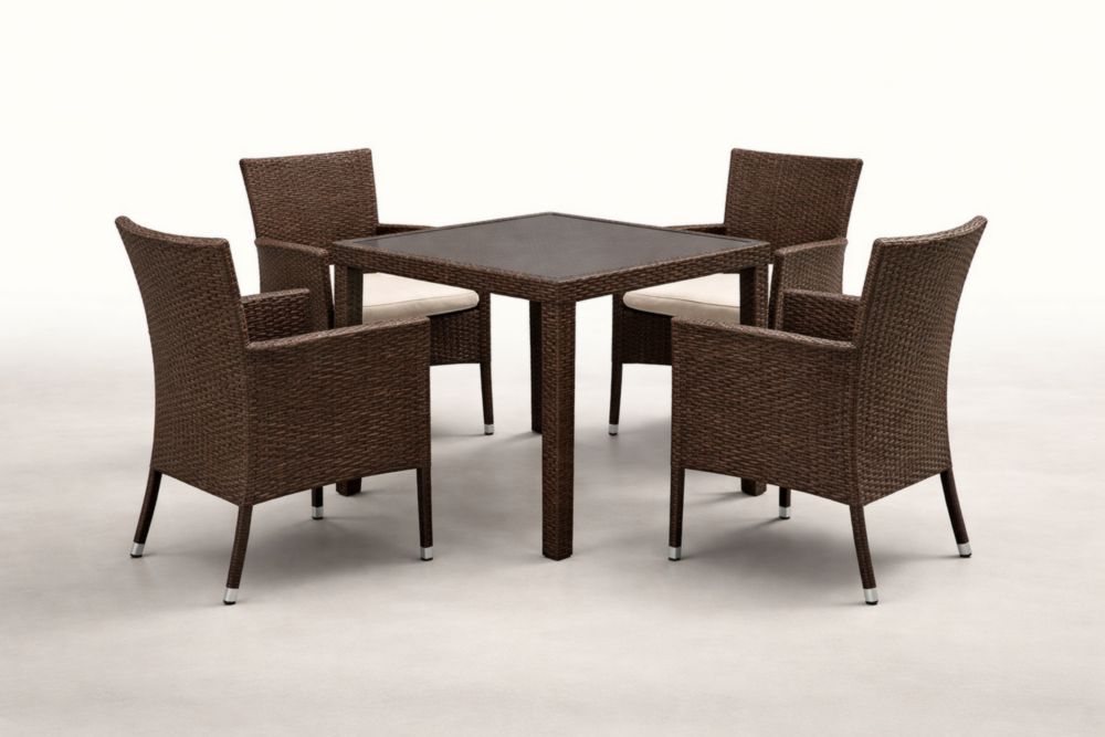 5-Piece Wicker Outdoor Dining Set with Square Table and Cushioned Chairs