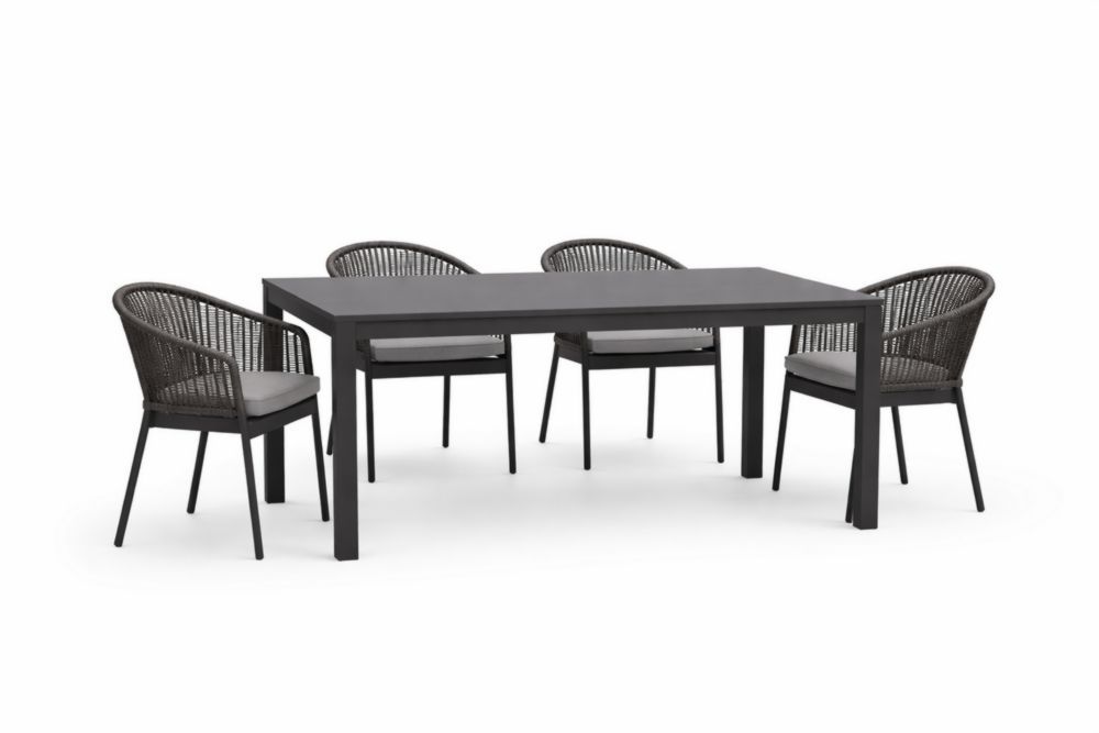 Outdoor Aluminum Dining Set with Rope Chairs and Cushions Black/Grey